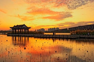 岭南飞檐化作流畅的悬挑屋顶,西侧轮廓轻轻扬起,如粤剧水袖翩然舒展,湖风过处,皆是雅韵。