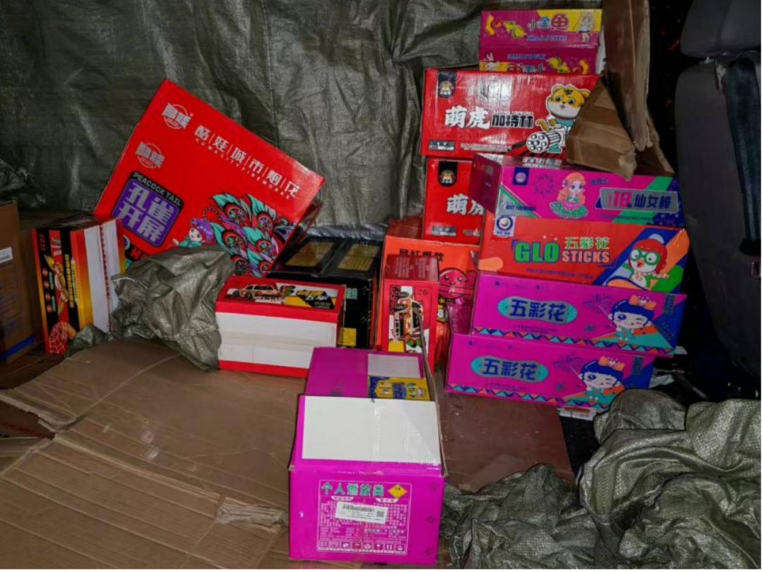 近日,执法人员联合胜利、坝头社区紧盯一河两岸、龙湾湿地公园等烟花爆竹燃放高频区域,开展不间断巡逻检查,当晚查获并收缴违规烟花爆竹9箱。另外,1月4日,共联社区检查人员巡查中发现一违法储存300余斤烟花爆竹的线索,迅速移交公安部门,公安部门立即出动对当事人开展立案调查处理,并对车内烟花爆竹依法进行收缴。