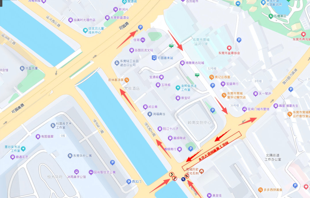 2、禁止运河西二路车辆往可园北路行驶
