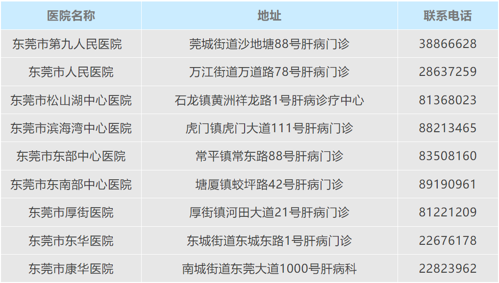 东莞市丙肝定点治疗机构名单及联系方式