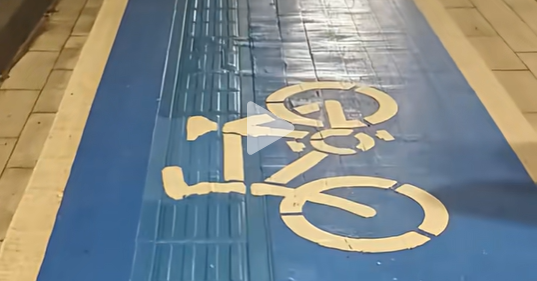 近日,有石碣镇市民发视频报料,靠近东江大桥的滨江中路,道路两旁的人行道被整体涂成蓝色,原本供视障人士通行的盲道也被完全覆盖,直接被划为了非机动车道,部分路段还摆放着石墩,进一步压缩了通行空间,给视障者出行带来极大安全隐患。