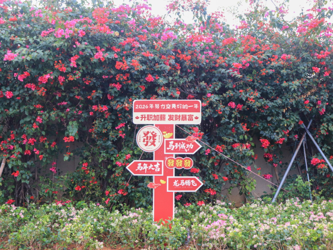 漫步河堤,抬眼满是春意浪漫。黄花风铃木率先奏响春的序曲,簇簇金黄挂满枝头,在阳光下熠熠生辉;紫荆花开得密密匝匝,粉白相间,随风洒落一地花瓣雨;三角梅攀上围墙,垂下紫红色的瀑布;两株高大的木棉树擎起满树“红灯笼”,英雄花的气韵与江水相映成趣。