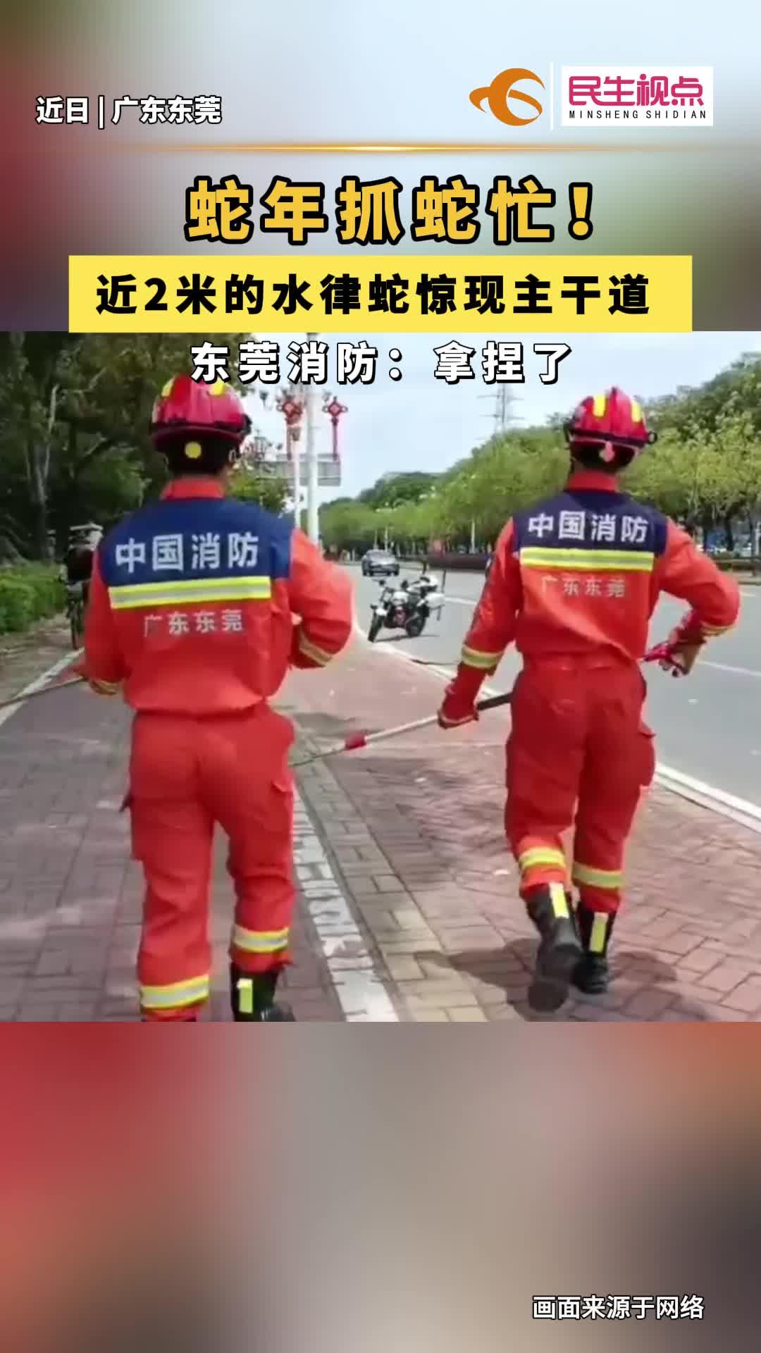 【民生视点】街头惊现2米大蛇!消防火速“捉拿”